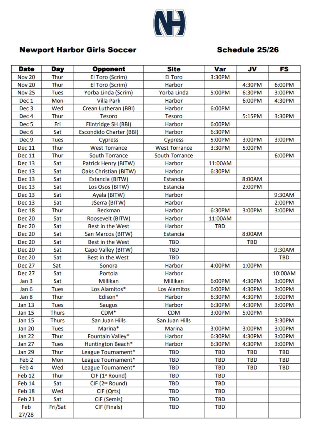 As always, some dates and times may change. Please read emails and follow us on Instagram for the latest updates (@nhhsgirlssoccer).